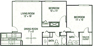 2 Bedroom, 1.5 Bath, 940 Sq.Ft.